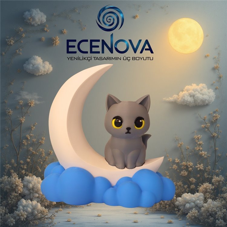 Ayın dinginliğini ve kedilerin zarafetini buluşturan bu özel 3D baskı masa lambası, gecelerinize huzur ve estetik katıyor. ECENOVA 3D’nin yüksek çözünürlüklü üretim tekniğiyle elde edilen bu ürün, detaylı yüzey dokusu ve yumuşak ışık dağılımı sayesinde hem çocuk odalarında hem de oturma alanlarında büyüleyici bir atmosfer yaratıyor.