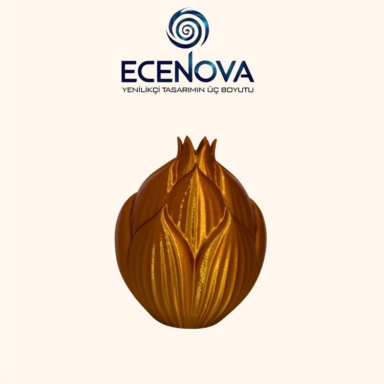 Lotus Mini Vazo, kompakt boyutu ile minimal ve sofistike bir dekoratif çözüm sunar. ECENOVA 3D baskı teknolojisi ile üretilmiş olup, dalgalı ve parlak yüzeyi ile küçük alanlarda modern estetik yaratır. Masa üstü veya küçük raf dekorasyonları için ideal bir objedir.